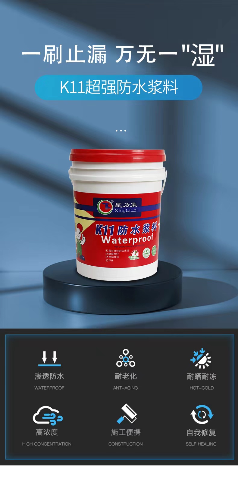 K11防水漿料是一種以抗堿的合成改性水泥基的防水材料,是建筑防水材料,其產(chǎn)品以操作簡(jiǎn)易,性能優(yōu)良而超越同類產(chǎn)品。